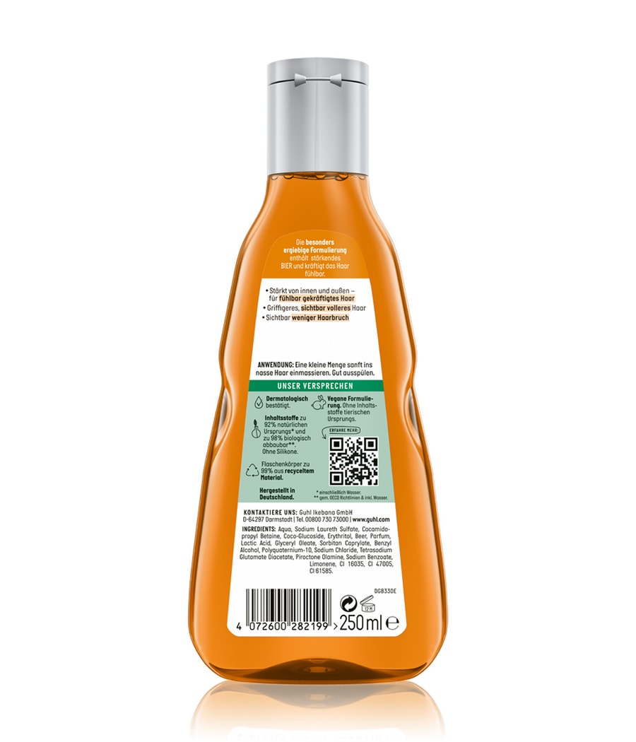 Экологически чистый: Питательный шампунь Guhl производится в Германии - корпус бутылки на 99% изготовлен из переработанного материала.