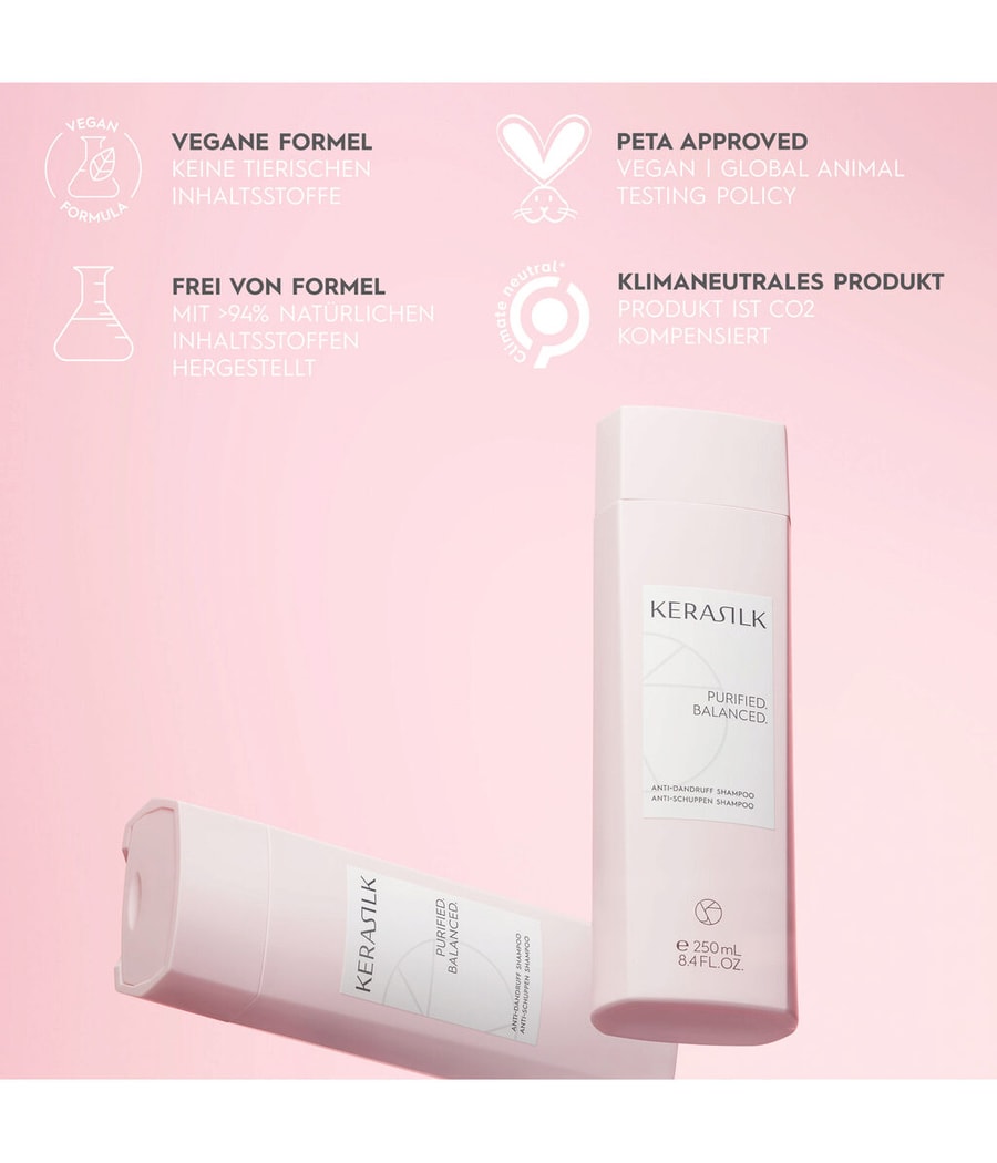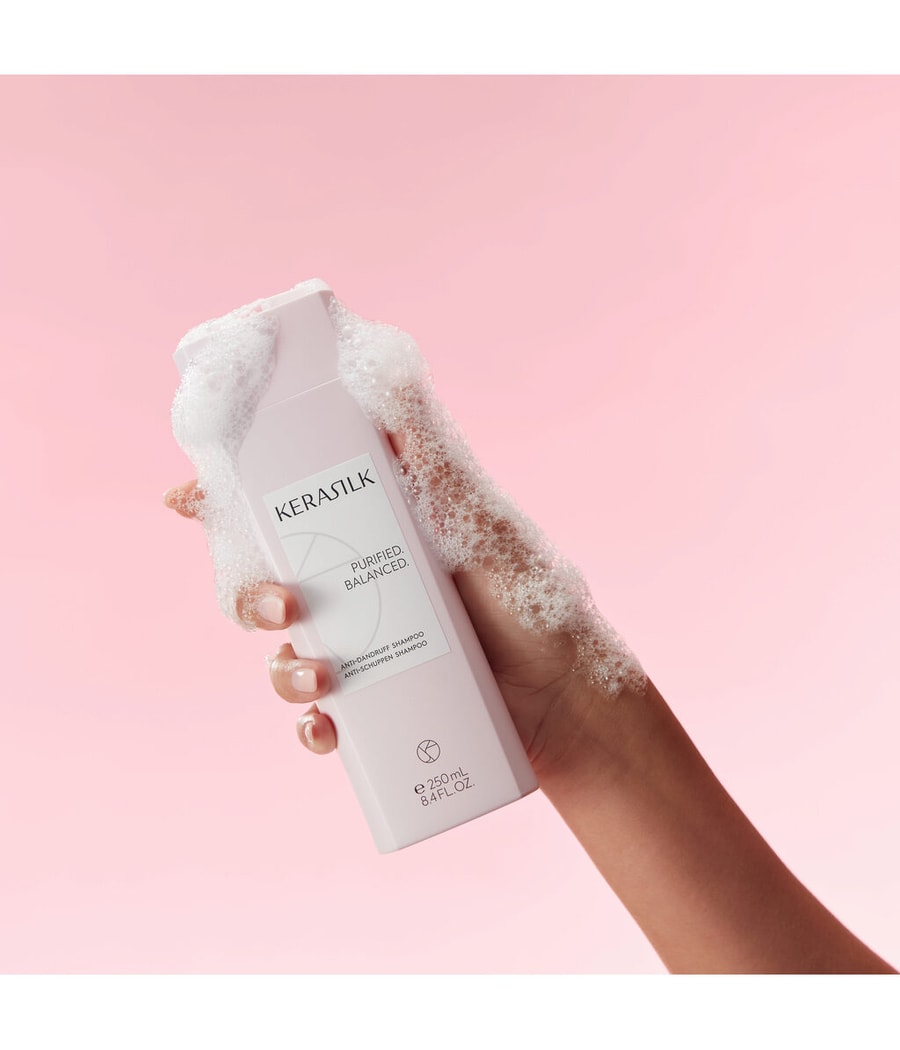 Нежный очищающий шампунь с биомиметическим шелком, эктоином и пироктон-оламином. Наш 100% веганский состав эффективно удаляет перхоть и восстанавливает баланс жирной кожи головы, придавая волосам ощущение чистоты.