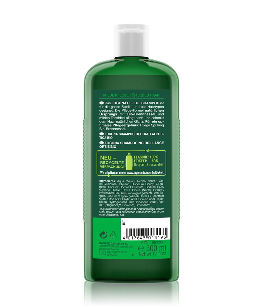Шампунь для УХОДА за волосами LOGONA подходит для всей семьи и для всех типов волос. Формула ухода натурального происхождения, содержащая органическую крапиву и мягкие поверхностно-активные вещества, мягко питает и придает волосам естественный блеск. Для достижения оптимального результата по уходу: кондиционер для ухода за органической крапивой.