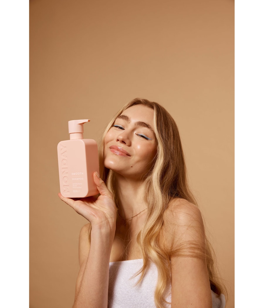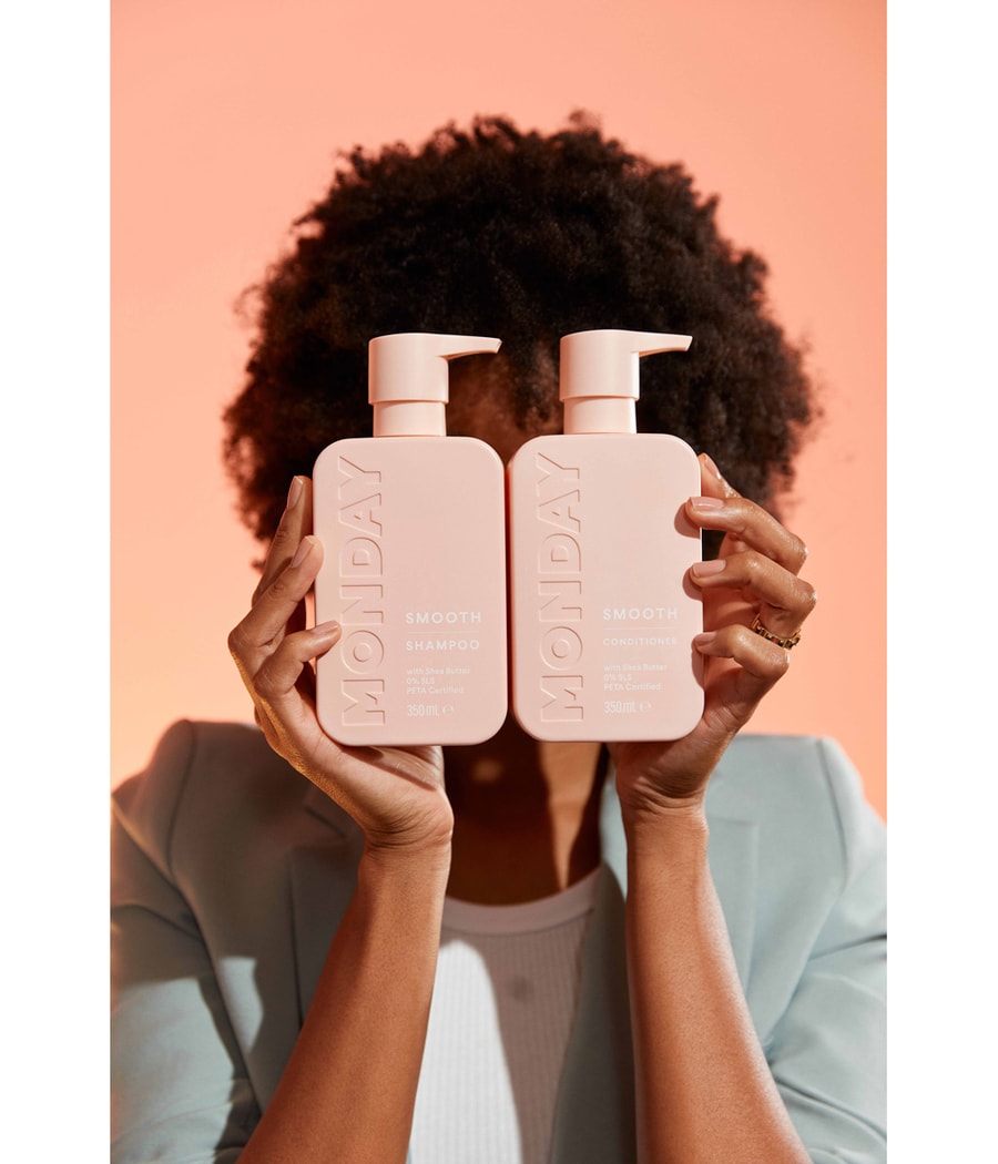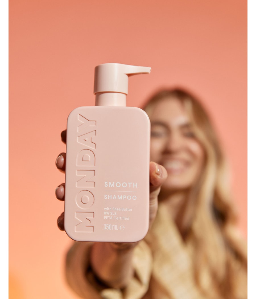 Шампунь MONDAY Haircare Smooth Antifrizz идеально подходит для вьющихся и вьющихся волос. Он обогащен маслом ши, придающим волосам блеск и мягкость.
