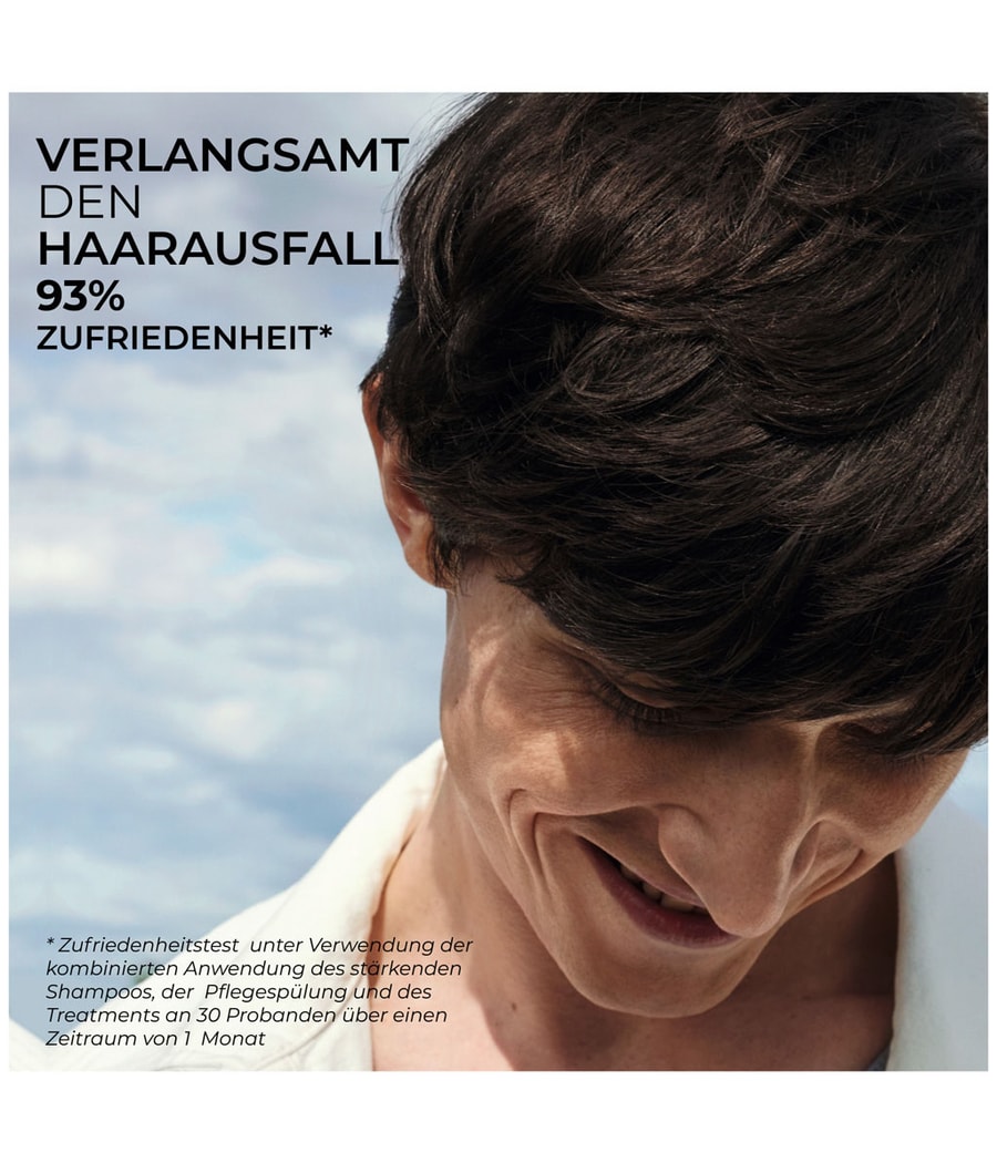 ** Объективированное клиническое испытание с использованием комбинации шампуня, кондиционера и интенсивного курса против выпадения волос, проведенное с участием 30 человек в течение 3 месяцев