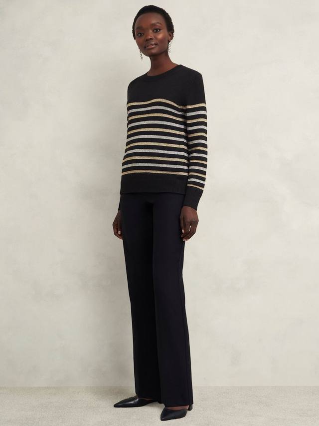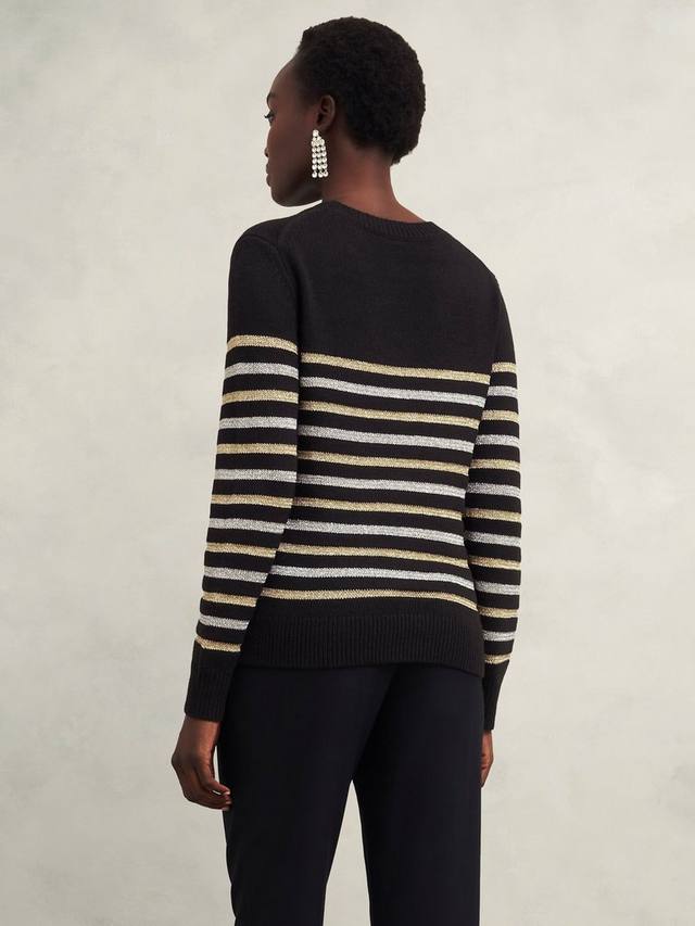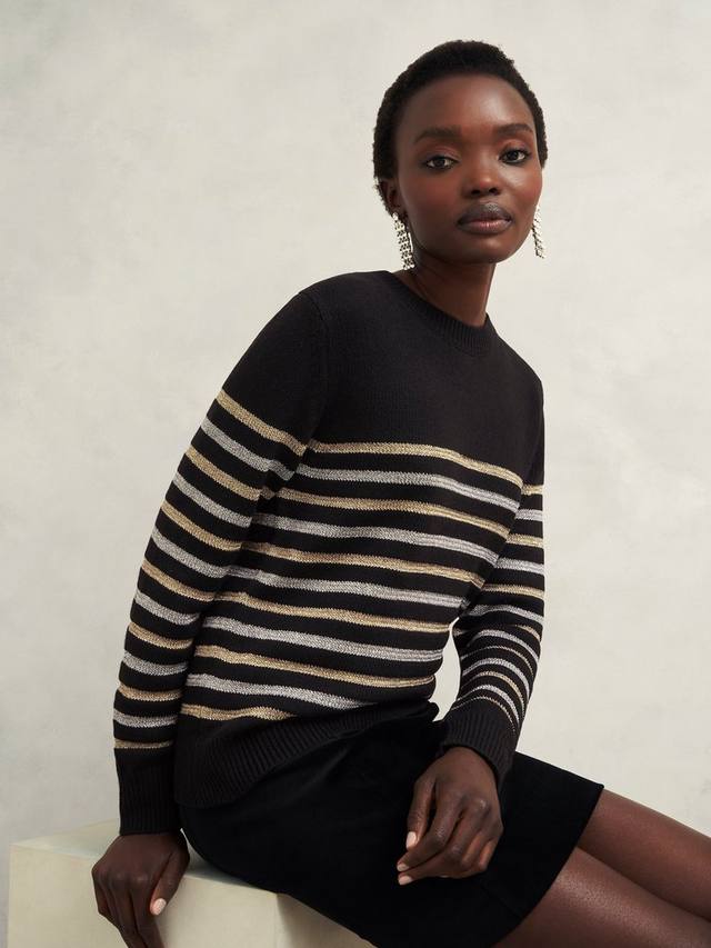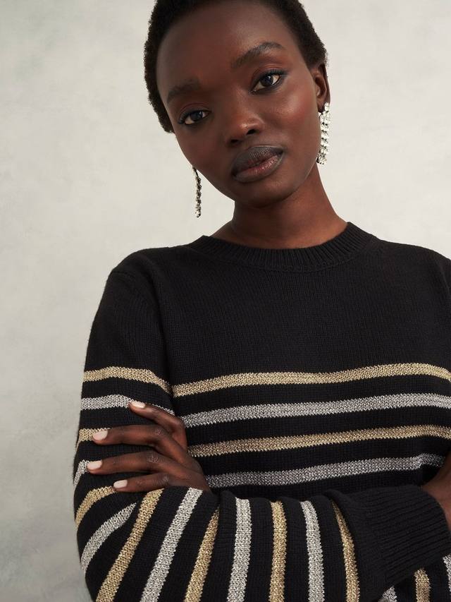 Полосатый джемпер Destiny, незаменимая вещь в вашем гардеробе для холодной погоды, отличается изысканным стилем, практичностью и легким блеском. Он изготовлен из ткани, смешанной с шерстью и легким оттенком кашемира.
