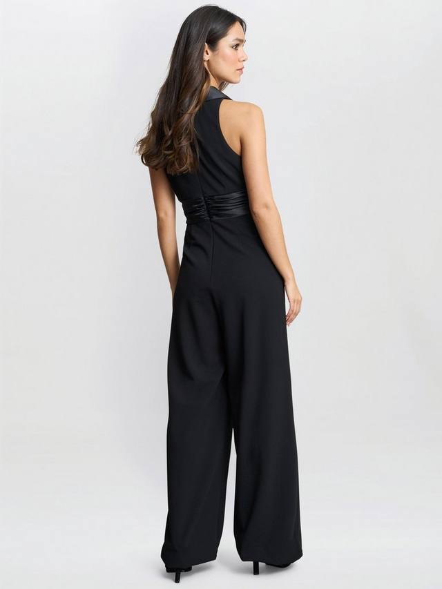 Этот шикарный комбинезон Gina Bacconi имеет крой без рукавов и V-образный вырез с бантиком, создающий утонченный образ. Линия талии подчеркнута деталью в виде пояса, красиво очерчивающей силуэт для создания привлекательного и элегантного образа. Широкие штанины придают образу универсальности и шика.