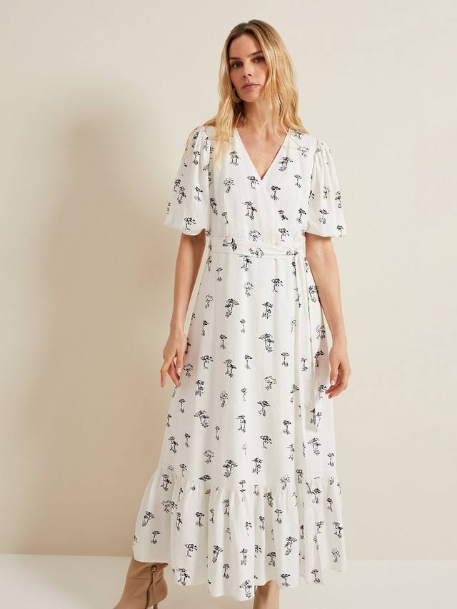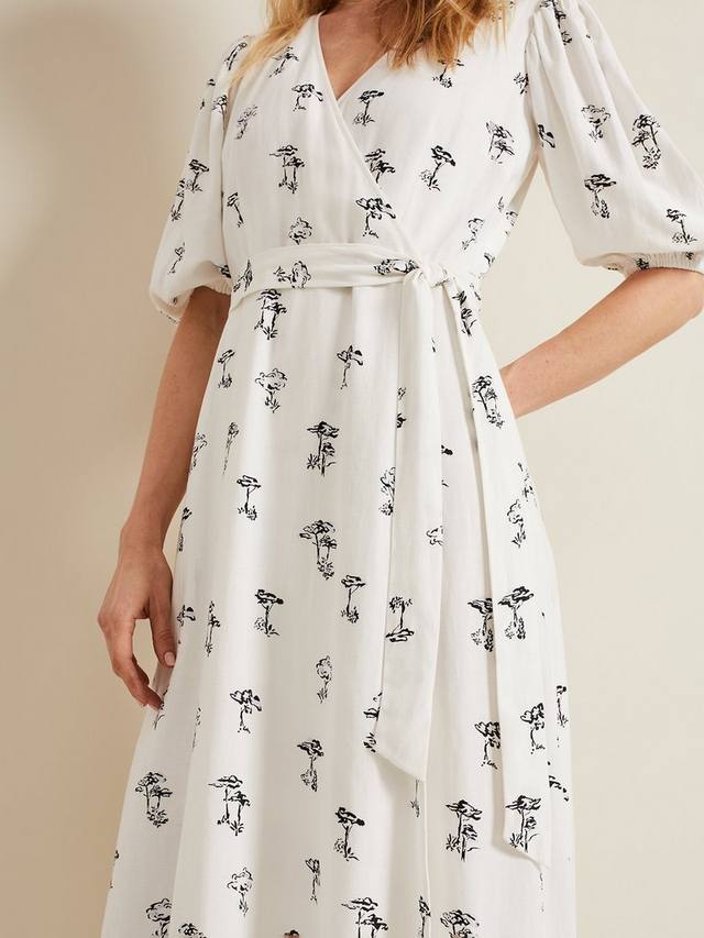 Это платье миди от Phase Eight, выполненное в неизменно привлекательном стиле с запахом, выполнено из легкой льняной ткани. Универсально облегающий v-образный вырез и короткие рукава украшены принтом в стиле листвы.