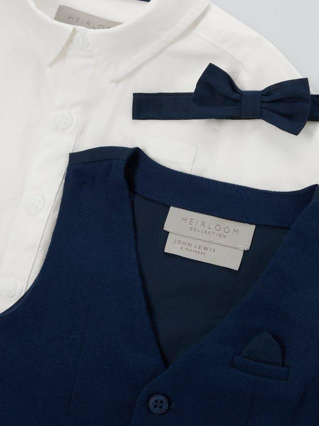 Этот комплект из 3 предметов поможет малышам выглядеть наилучшим образом. В комплект входят поплиновая рубашка, жилет и съемный галстук-бабочка, все из 100% хлопка. Коллекция John Lewis Heirloom, созданная исключительно нашей собственной командой дизайнеров, вдохновлена нашим наследием - часто с использованием принтов из наших архивов. Ориентированная на продуманный, замысловатый дизайн, эта коллекция премиум-класса предлагает неподвластные времени изделия, которыми можно дорожить снова и снова. Лучший хлопок Выбирая нашу хлопчатобумажную продукцию, вы поддерживаете наши инвестиции в миссию Better Cotton - помогать хлопковым сообществам выживать и процветать, защищая и восстанавливая окружающую среду. Лучшие производители хлопка - это фермеры, которые заботятся об окружающей среде и уважают права и благополучие трудящихся. Этот продукт получен с помощью системы массового баланса и, следовательно, может содержать хлопок не лучшего качества.