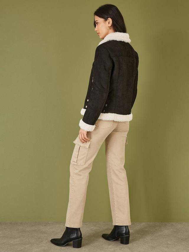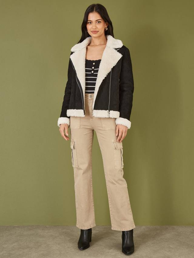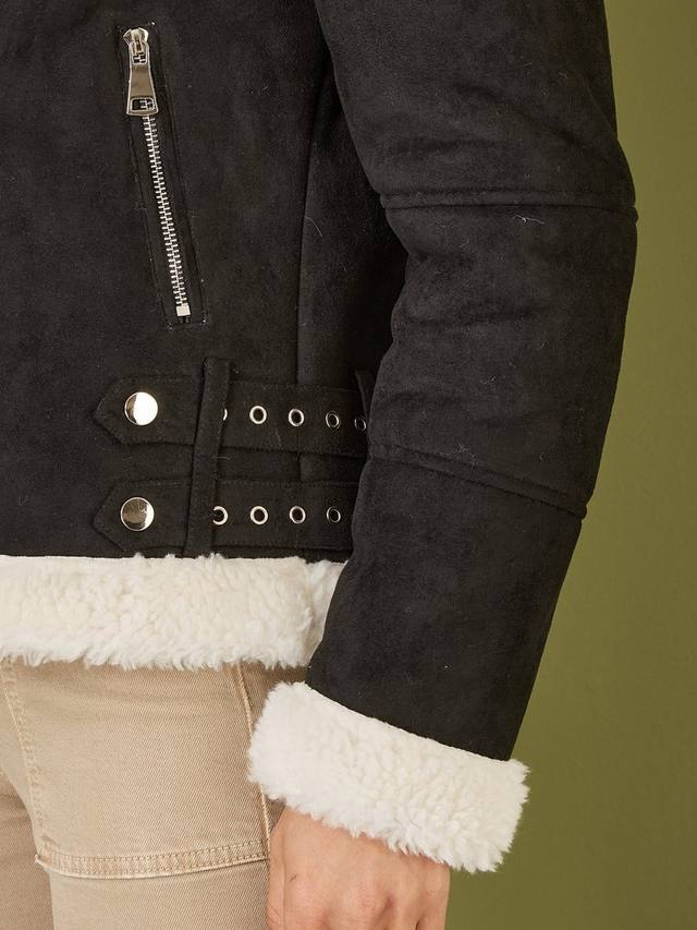 Эта байкерская куртка от Yumi с воротником и манжетами из искусственной овчины - идеальный вариант для вашего "выходного" образа. Она отлично смотрится поверх повседневной одежды благодаря застежке-молнии и пряжке.