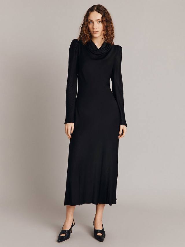 Это платье в пол от Ghost - образец простоты, сшитое из вискозы, которую любят за ее невесомость. Модель с вырезом-капотом и длинными рукавами выдержана в минималистичном стиле для по-настоящему сезонной коллекции.