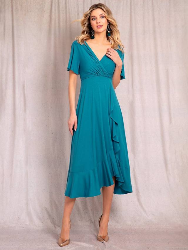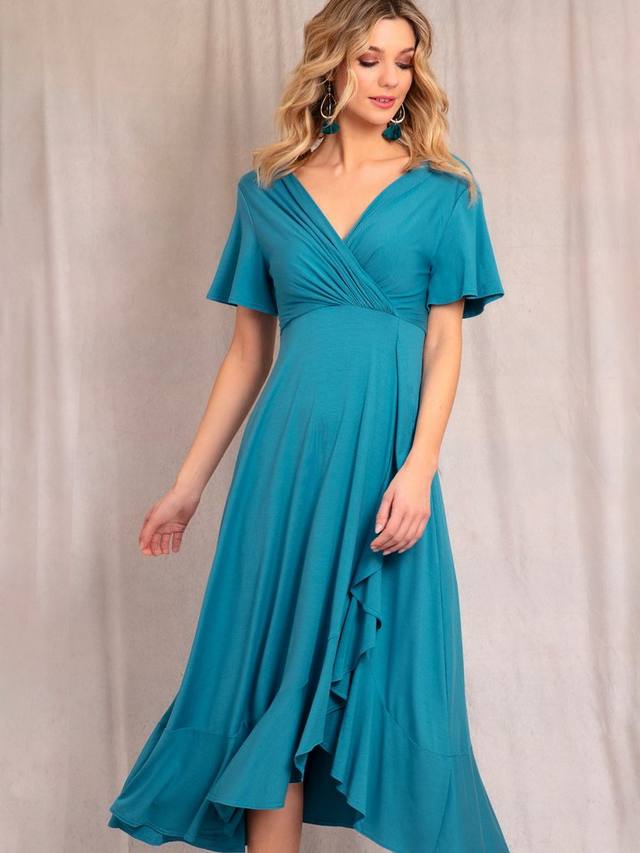 Это платье средней длины от Alie Street, выполненное в неподвластном времени стиле с запахом, сшито из смеси легкой, как шепот, вискозы. Благодаря универсально привлекательному v-образному вырезу и коротким рукавам этот фасон выдержан в минималистичном стиле для по-настоящему сезонной коллекции.