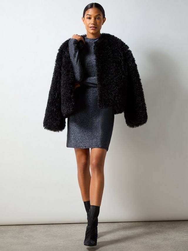 Мини-платье Darcy sparkle от Ro & Zo отличается ослепительным приталенным дизайном из переливающейся ткани. У него высокий вырез, внутренняя отделка на подкладке и молния сзади, придающая ему изящный силуэт. Платье длиной выше колена идеально подходит для создания элегантного и шикарного образа.