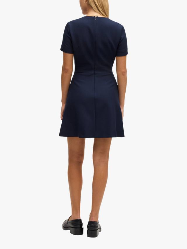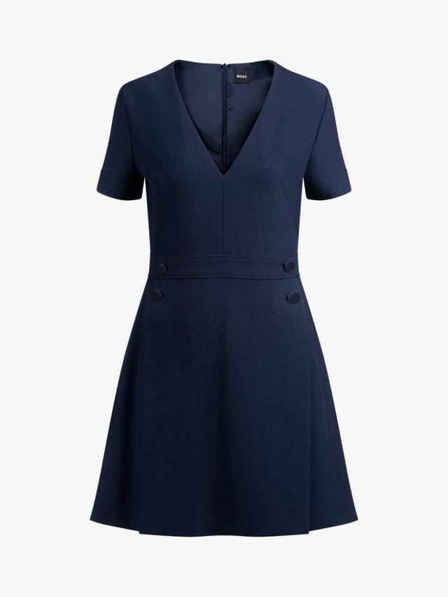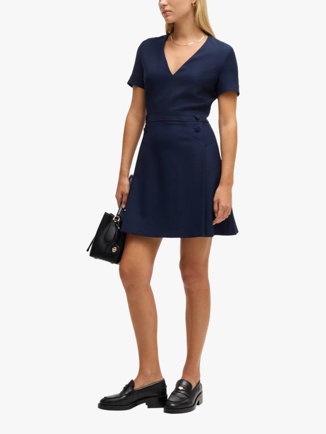 Это мини-платье от BOSS, универсально облегающего кроя и расклешенной формы, изготовлено из смеси тканей. Этот фасон с v-образным вырезом и короткими рукавами выполнен с минимальными деталями для удобства ношения.
