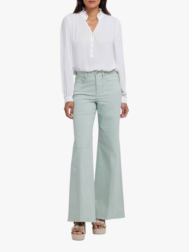 Джинсы Mia Palazzo от NYDJ с супер-расклешенными штанинами создают смелый, свежий образ. Эта пара с высокой посадкой на талии выгодно облегает бедра и украшена складками по центру штанин. В нашей технологии Lift Tuck используется фирменная утягивающая вставка с запатентованным рисунком крест-накрест, которая формирует и поддерживает ваши изгибы, создавая всегда элегантный силуэт. Модель с пятью карманами и ширинкой на молнии и пуговицах. Размеры: Длина по внутреннему шву: 33 дюйма, подъем спереди: 10,75 дюйма, подъем сзади: 15,75 дюйма, колено: 20,5 дюйма и ширина штанин: 26,5 дюйма. Замеры были сделаны на размер UK 10. Выберите на один размер меньше вашего обычного размера для идеальной посадки.