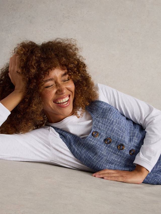 Этот комбинезон от White Stuff с круглым вырезом выполнен из легкого льна, обеспечивающего легкость и воздухопроницаемость.