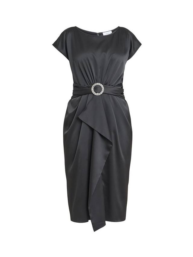 Облегающее платье миди от Gina Bacconi с женственными оборками, стянутое на талии поясом с круглой пряжкой. С непринужденным круглым вырезом и короткими рукавами, без рисунка или принта, так что вы можете дать волю своему воображению и творчеству, когда дело доходит до подбора аксессуаров.