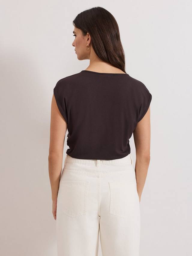 Эта блузка от Phase Eight станет изящным дополнением к вашему гардеробу и создаст игривый образ благодаря принту в виде цепочки. Простое платье с круглым вырезом и короткими рукавами-капор из легкой, но прочной ткани идеально сочетается с летящими юбками миди для летних прогулок по городу.
