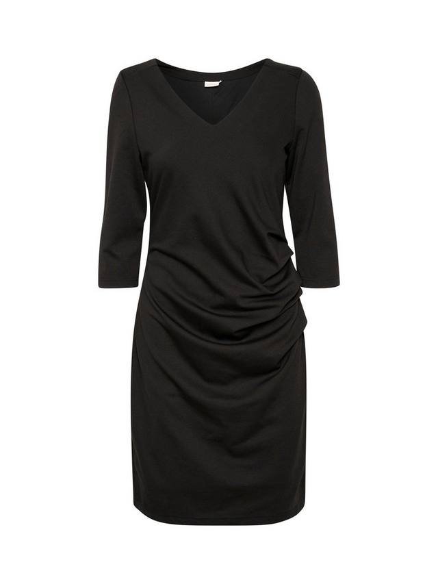 Облегающее коктейльное платье длиной до колен от KAFFE, подчеркивающее ваш силуэт, сшито из смесовых тканей и имеет приталенный крой. Этот фасон с приталенным v-образным вырезом и рукавами длиной три четверти выполнен по индивидуальному заказу с рюшами спереди и декоративными швами сзади.