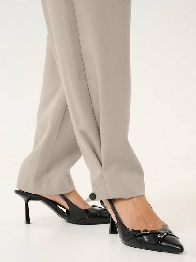 Брюки vitta - это классные и простые брюки с множеством вариантов фасона. Они со складками на высокой талии и потайным поясом, свободного покроя, с зауженными штанинами, которые застегиваются на пуговицу по низу. Брюки имеют косые передние карманы и прорезные задние карманы в полный рост.