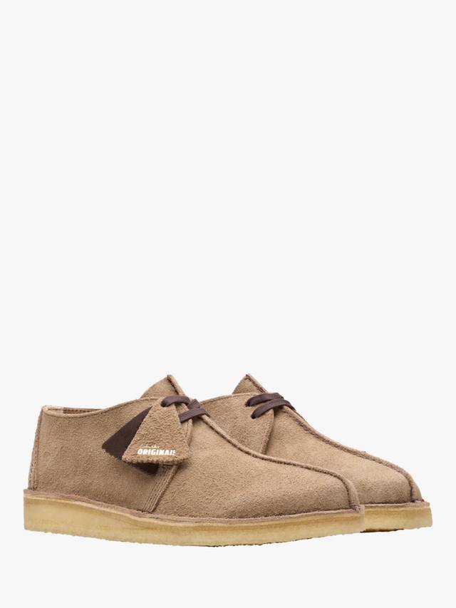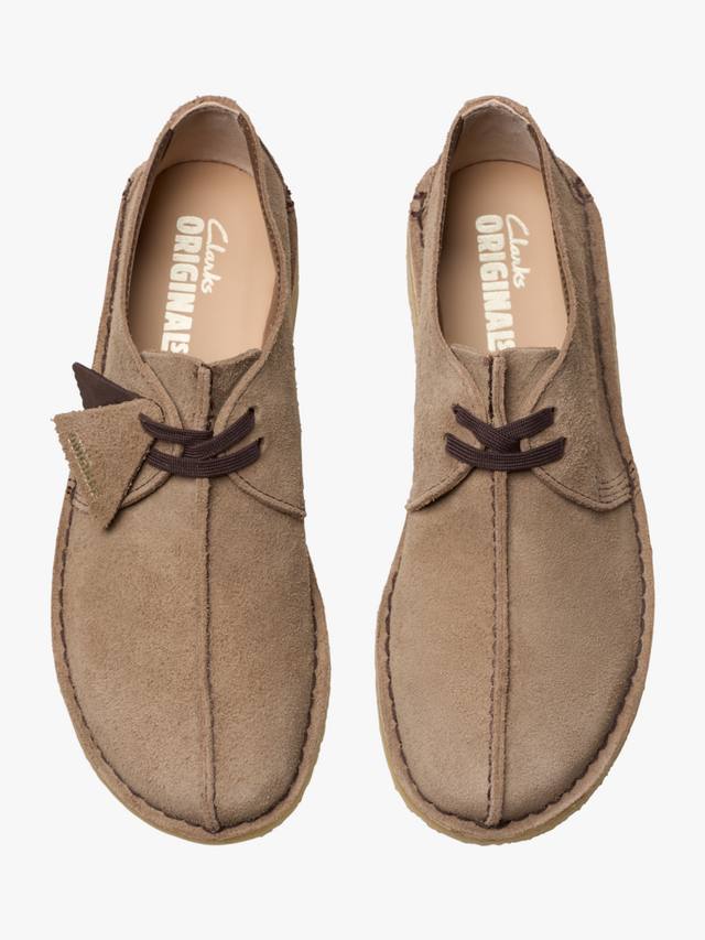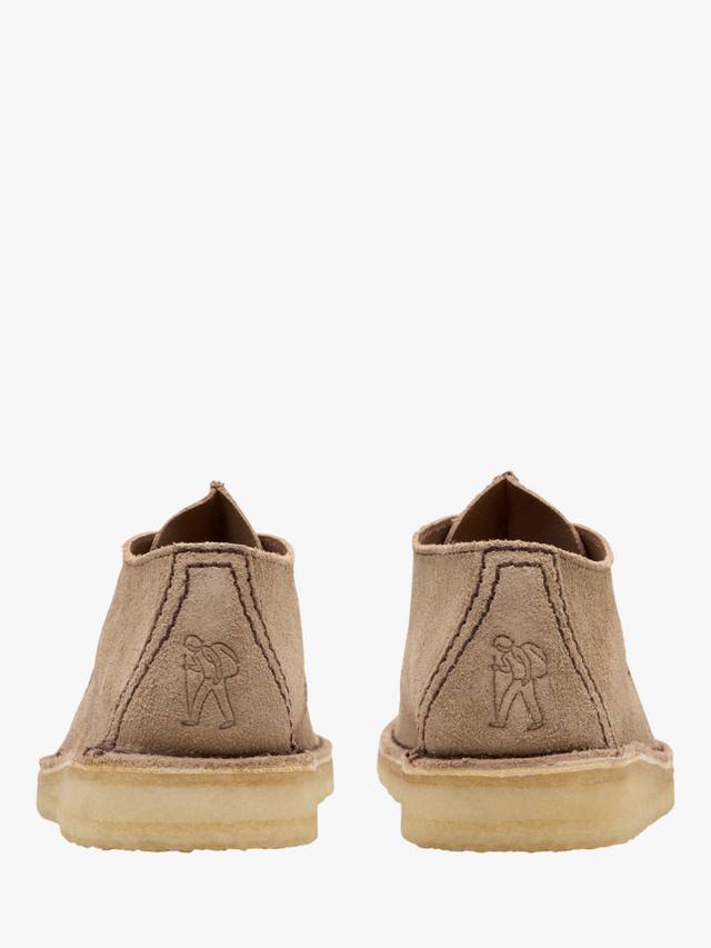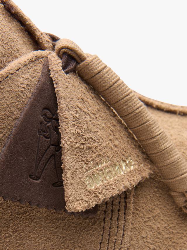 Верх из мягкой, как масло, замши идеально контрастирует с подошвой из натурального крепа, а плоские шнурки и классические застежки Clarks придают изделию повседневный вид.