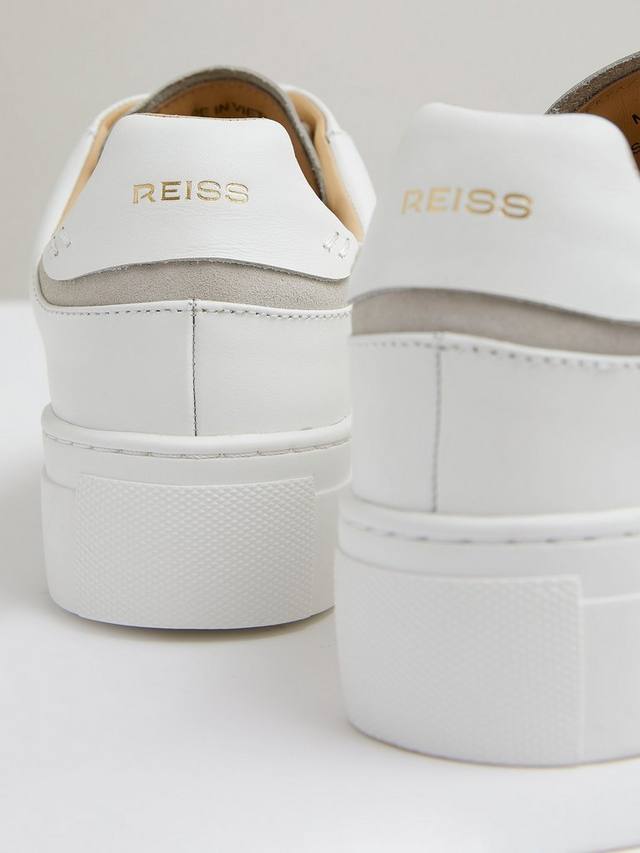Кроссовки Francesca от Reiss - это свежий взгляд на популярный силуэт с низким верхом. Туфли изготовлены из кожи с массивной подошвой и декоративной перфорацией, а каблучный язычок отделан стежками и замшей.