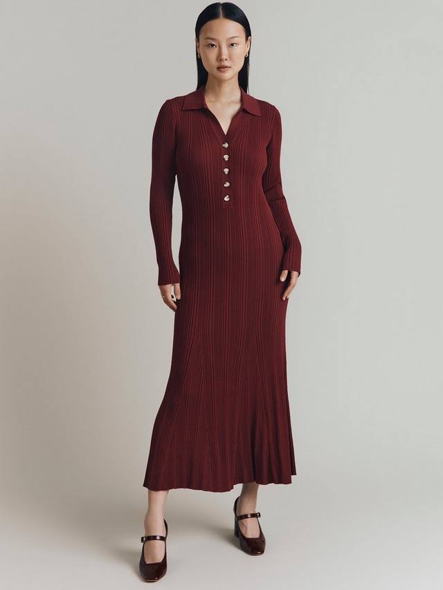 Это трикотажное платье миди от Ghost, подчеркивающее ваш силуэт за счет облегающей формы "клеш", имеет крой с воротником и рукавами полной длины и поставляется без рисунка или принта, так что вы можете дать волю своему воображению и творчеству, когда дело доходит до подбора аксессуаров.