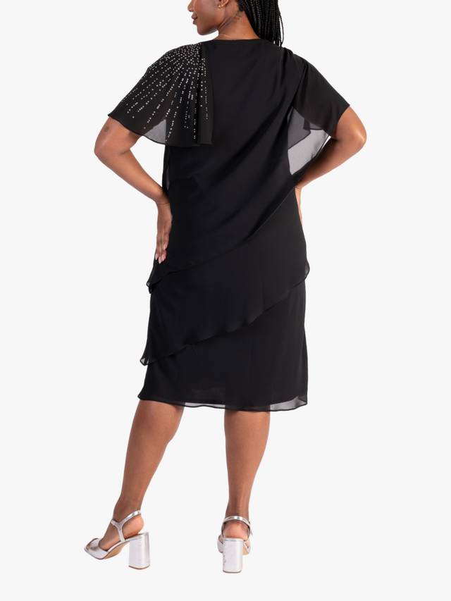 Элегантное платье миди от chesca с каскадом бриллиантовых деталей на одном плече создает ощущение текучести благодаря культовому многоуровневому силуэту. Платье с асимметричным вырезом и женственными свободными рукавами, сшитое из легкой шифоновой ткани, подойдет для изысканных случаев.