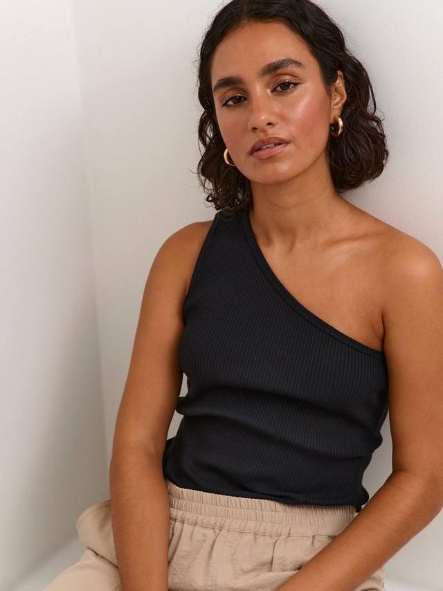 Топ в рубчик от pia с одним плечом KAFFE, глубокий черный