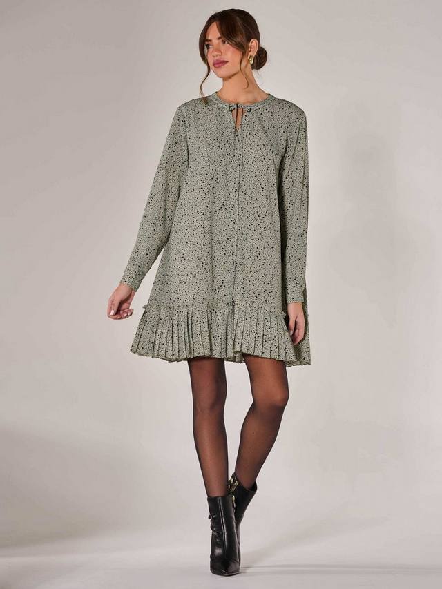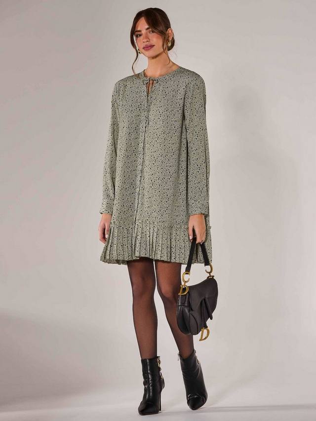 Платье-рубашка с длинным рукавом от Jolie Moi - это идеальное сочетание изысканного стиля и непринужденной универсальности, что делает его незаменимым в вашем гардеробе. Представьте, что в этом милом платье вы без особых усилий перейдете от работы к планам на выходные. Круглый вырез с длинными рукавами с манжетами и застежкой на пуговицы спереди, украшенный игривым завязывающимся бантом, придает женственности. Открытый плиссированный низ придает изделию современный вид и намек на движение, в то время как абстрактный пятнистый принт придает вещам веселости и свежести.