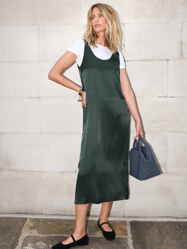 Встречай свое самое полезное платье, Жизель. Дизайн с двусторонним круглым или V-образным вырезом - выбирай сам! Сшитое из роскошного вискозного атласа, оно имеет нежный силуэт А-силуэта, ниспадающий до идеальной длины миди. Модель оснащена застежками-кнопками для плечевых ремней (фиксаторами бюстгальтера), которые удерживают все на месте, и отделана гладкими оверлочными краями. Сочетаете ли вы его с туфлями на каблуках и блейзером для вечернего выхода или дополняете свитером и ботинками для прохладных осенних дней - вариантов укладки бесконечное множество.