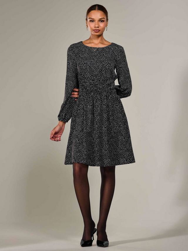 Непринужденная элегантность сочетается с комфортом в платье Миди с длинным рукавом и рюшами на талии от Jolie Moi. Это платье на подкладке с изящными длинными рукавами и широким поясом с рюшами, создающим привлекательный силуэт, выполнено в классическом принте в горошек, придающем ему неподвластный времени шарм, который вы будете носить сезон за сезоном. Простой круглый вырез придает ему универсальности, облегчая укладку. Просто наденьте его с легким жакетом весной или уютным кардиганом осенью, и вы готовы к работе или семейному торжеству.