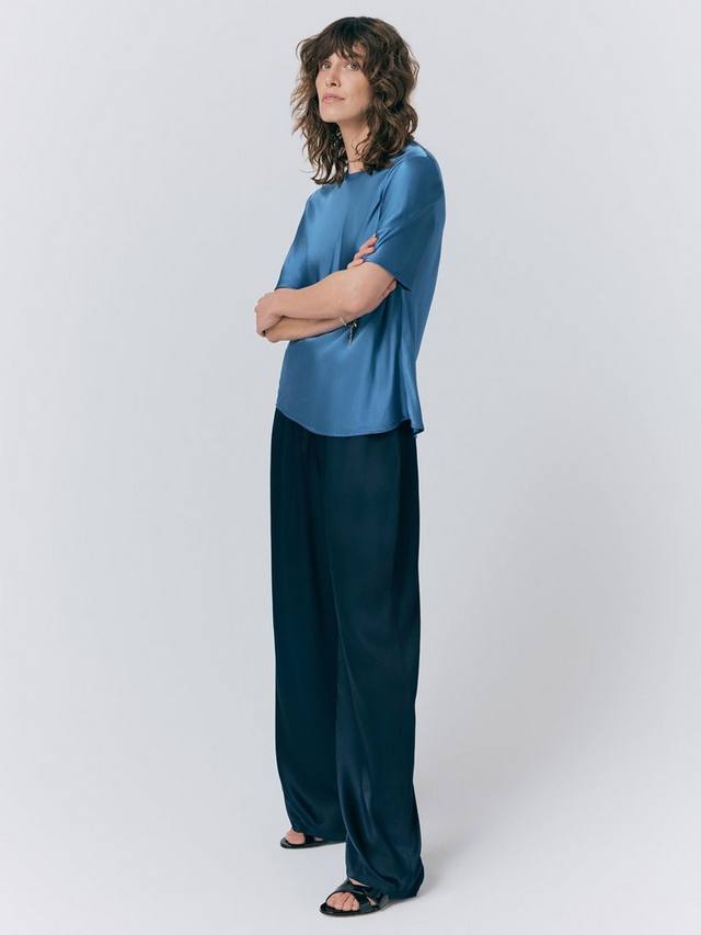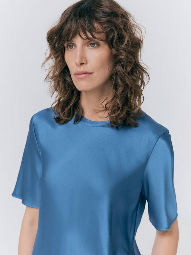 Топ Ivy изготовлен из нашей фирменной атласной ткани. Роскошно мягкий и удобный топ Ivy с короткими рукавами и круглым вырезом. Сочетайте этот универсальный топ с джинсами, брюками, юбками или шортами.