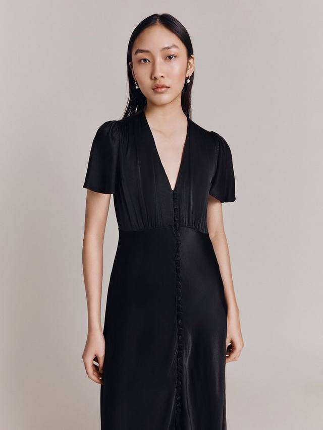 Изящное атласное платье миди косого кроя Ghost, черный