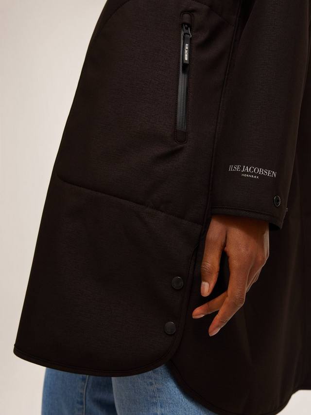 Для прогулок с друзьями, которым не помешает британская погода, эта парка от Ilse Jacobsen Hornbæk имеет удлиненную трапециевидную форму, которая не скроет вас. Практичный вариант для переменчивой погоды благодаря встроенному капюшону, он изготовлен из дышащей ткани soft shell, которая выдерживает давление воды до 5000 мм, поэтому выдерживает ливни средней и сильной интенсивности. Завершается зауженными швами и покрытием Ecorepel, которое создает невидимый щит, оставляя вас довольными и сухими.