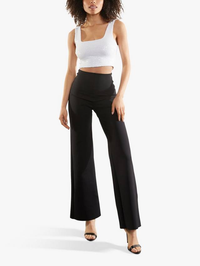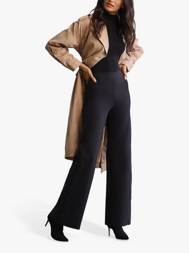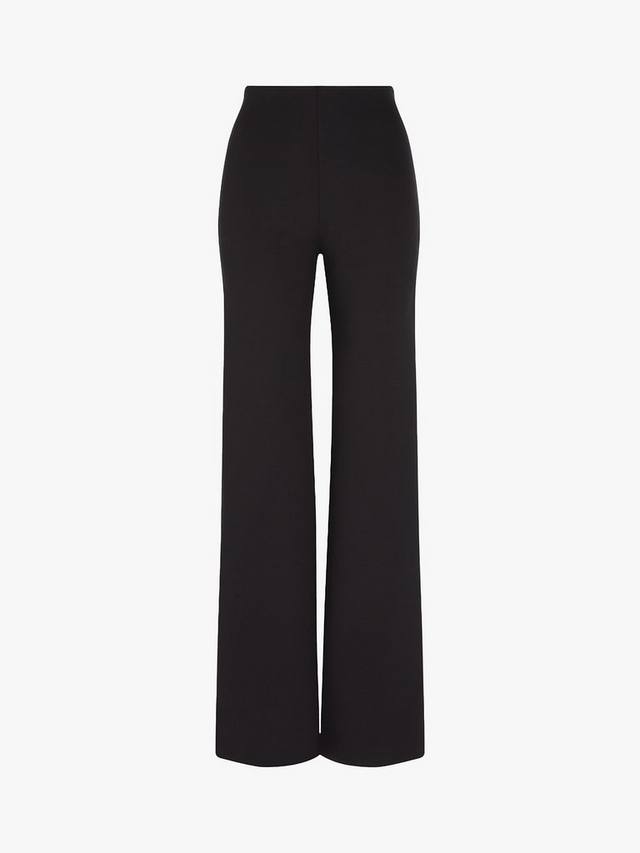 Расклешенные брюки с высокой посадкой из роскошной технической неопреновой ткани, которая облегает фигуру, обладает высокой эластичностью и невероятным восстановлением. Модель с фирменным внутренним поясом для удобной посадки.