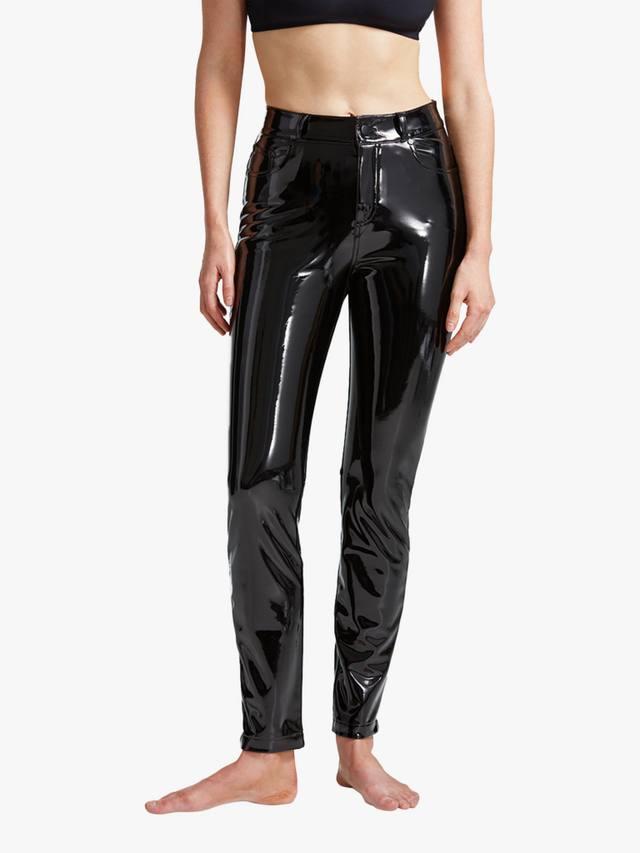 Эти брюки с пятью карманами от Commando завораживают. Этот стиль в джинсовом стиле выполнен из фирменной блестящей искусственной лакированной кожи с четырехсторонней растяжкой и восстановлением и имеет задние и передние карманы, шлевки для ремня, а также ширинку на молнии и пуговицах. Сильный блеск может вызвать легкое "скрипение". Если для вас это проблема, мы рекомендуем нанести легкий слой прозрачного увлажняющего крема или масла для тела на внутреннюю поверхность бедер брюк.
