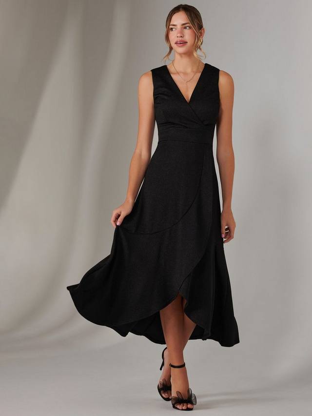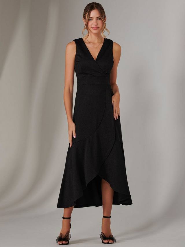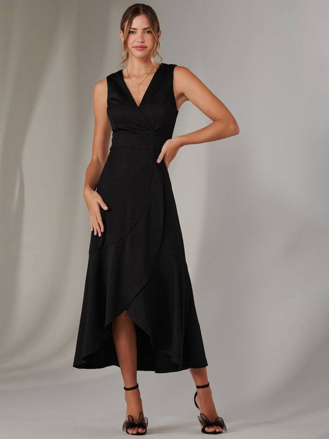 Выделитесь в макси-платье с оборками от Jolie Moi с облегающим лифом, v-образным вырезом с искусственным запахом и подчеркивающим талию поясом. Мерцающая ткань гарантированно завораживает, как и юбка с оборками, ниспадающая каскадом до элегантной длины макси. Это платье без рукавов с потайной застежкой на молнию, которая выглядит сдержанно, но при этом его легко носить. Оно идеально подходит для вечерних мероприятий или тех случаев, когда вы хотите почувствовать себя особенной.
