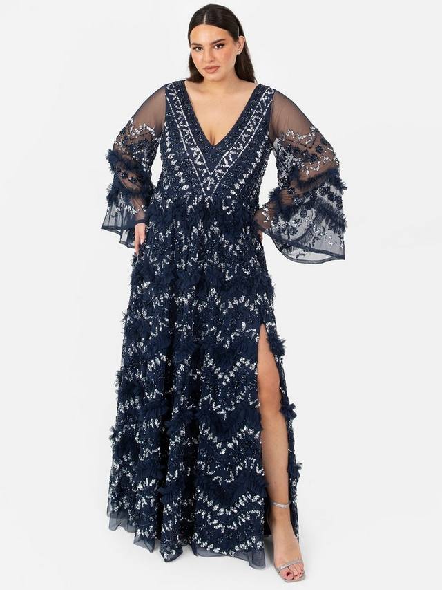 Появитесь на своем следующем мероприятии на красной дорожке в этом мерцающем макси. Точно сшитые вручную украшения на облегающем лифе и прозрачных расклешенных рукавах подчеркивают внимание Maya к деталям, образуя элегантные ряды блесток. Оборки на юбке идеально сочетаются с мерцающими блестками, которые продолжаются на макси-юбке, а разрез по бокам до бедра придает утонченность этому очаровательному изделию. Дополните образ серебристыми аксессуарами и ремешками на каблуках.