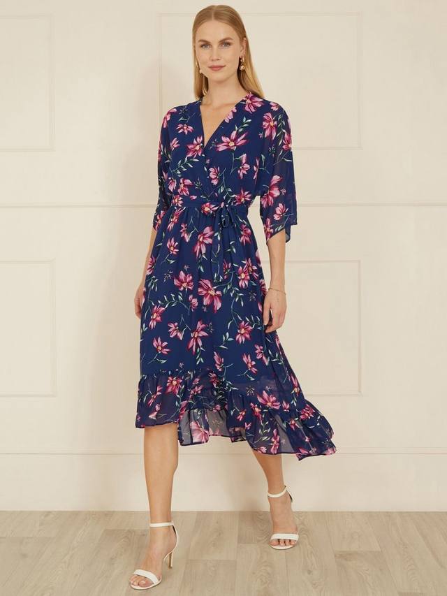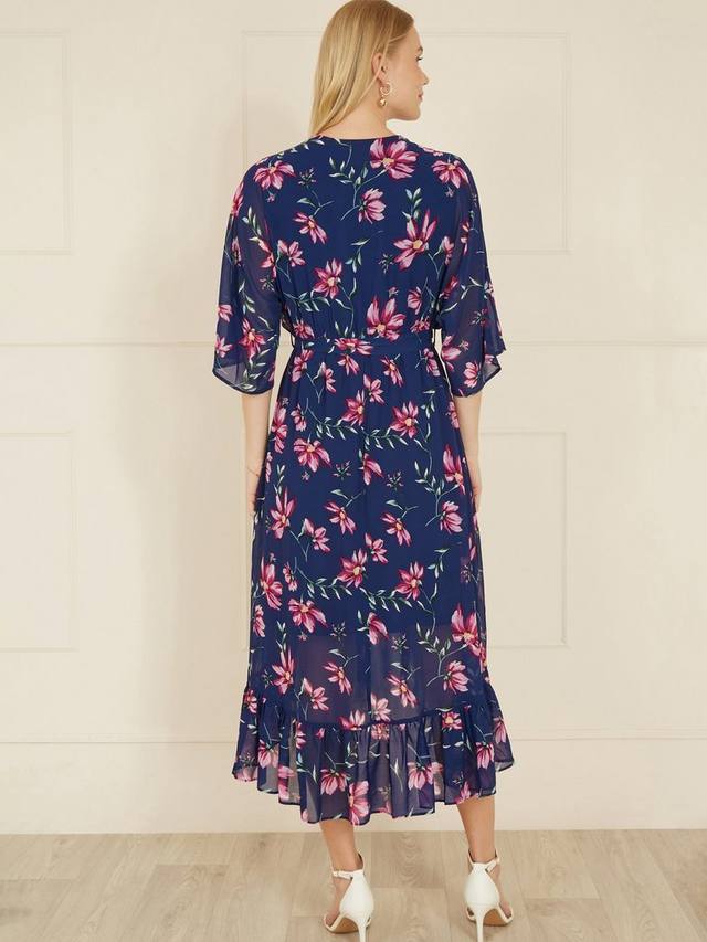 Продемонстрируйте свой новый крой по любому особому случаю в этом сезоне в этом абсолютном сногсшибательном платье от Yumi. Мы знаем, что это платье с глубоким подолом, который шуршит и струится, рукавами в стиле кимоно длиной три четверти и таким милым цветочным принтом, что вы почувствуете себя на миллион долларов дороже. Обтягивающий вырез и пояс с завязками создают красивый силуэт. Наденьте на свадьбу или женский день на скачках и ждите, когда посыплются комплименты.