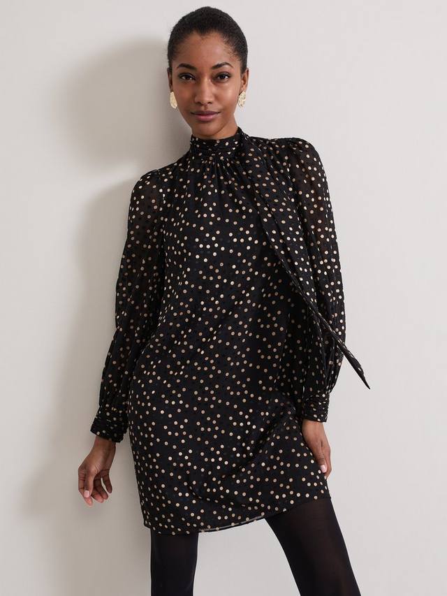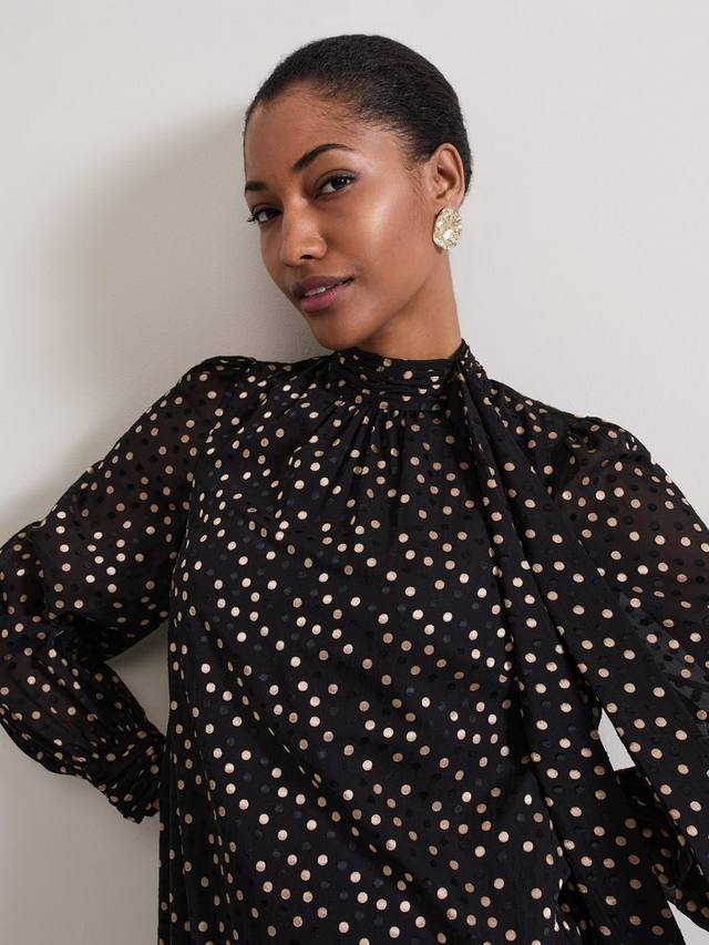 Платье мейбл в горошек Phase Eight, цвет Black/Gold
