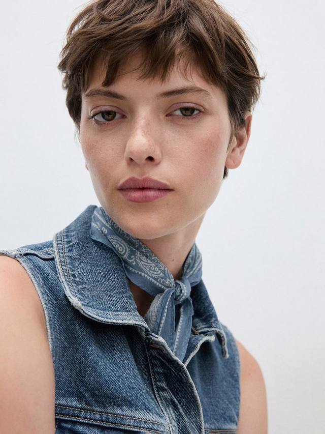 Это мини-платье в джинсовом стиле от Mango, ставшее настоящим фаворитом, выполнено из чистого хлопка. Элегантное, с вырезом-воротником, это платье является воплощением абсолютного минимализма.