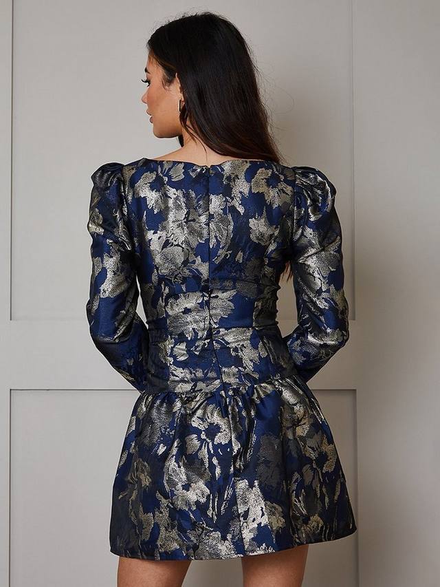 Жаккардовое мини-платье Chi Chi London, темно-синий