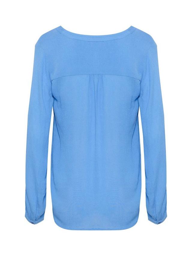 Янтарная блузка - повседневный и удобный топ, идеально подходящий для вашего повседневного гардероба. Она имеет непринужденный крой и привлекательный V-образный вырез с приталенной планкой. Блузка имеет длинные рукава, собранные в узкую манжету на пуговицах, и разрез на бедрах. Волокна ECOVERO , используемые в этом продукте, извлекаются из экологически чистой древесной массы и производятся с помощью экологически ответственного процесса производства волокон.