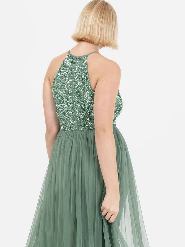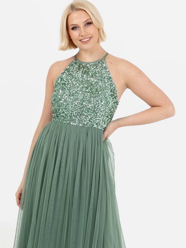 Станьте центром внимания в этом эффектном вечернем платье макси. Облегающий лиф с коротким вырезом, украшенный мерцающими пайетками ручной работы и подвешенный на тонких бретельках, прекрасно контрастирует с романтичной юбкой из тюля, которая грациозно стелется по полу при движении. Будь то наряд для подружек невесты на выпускной или элегантный вечерний, сочетайте его с подходящими туфлями на каблуке и мерцающим клатчем, чтобы создать незабываемый образ.