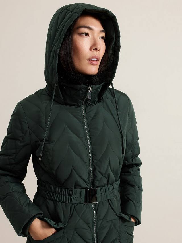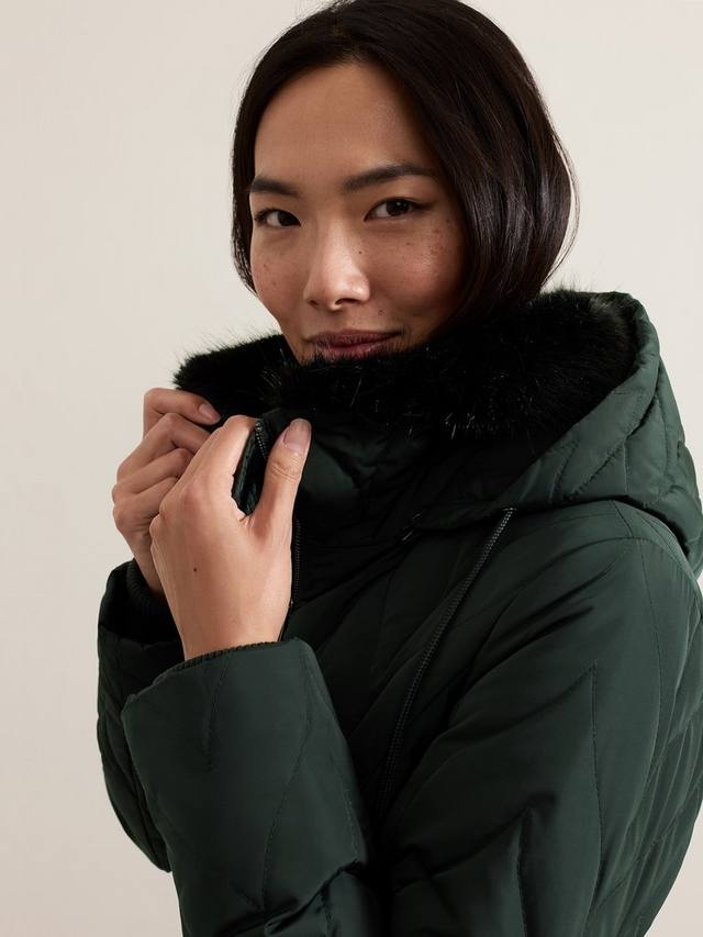 Пуховик - основа современного гардероба, и пуховик Hollie не исключение. Это пальто со стеганым рисунком на темно-зеленой подкладке имеет съемный меховой воротник, большие карманы на флисовой подкладке, эластичные манжеты и регулируемый пояс. Уютный капюшон и наполнитель из переработанных перьев и пуха согреют вас даже в самые холодные дни. Изготовлены с использованием переработанных материалов, что помогает нам снизить наше воздействие на планету.