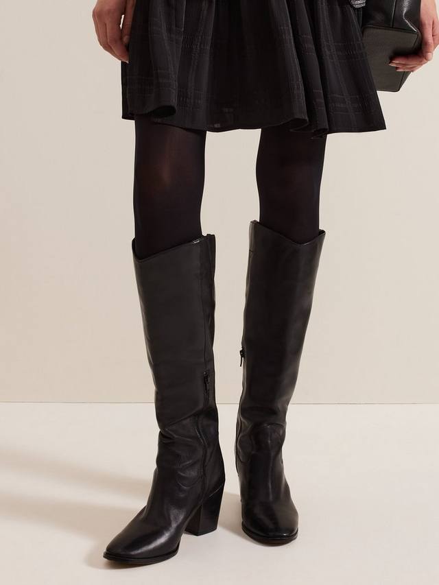 Западные кожаные сапоги до колен Phase Eight, черный 20 986₽