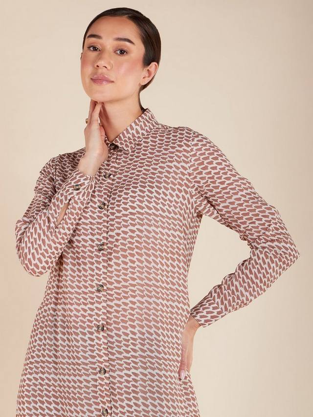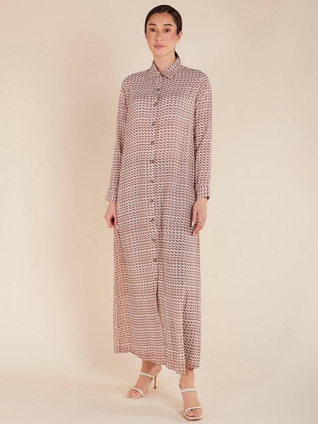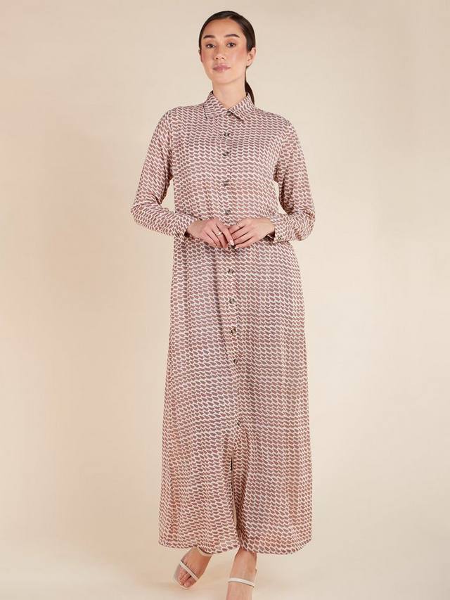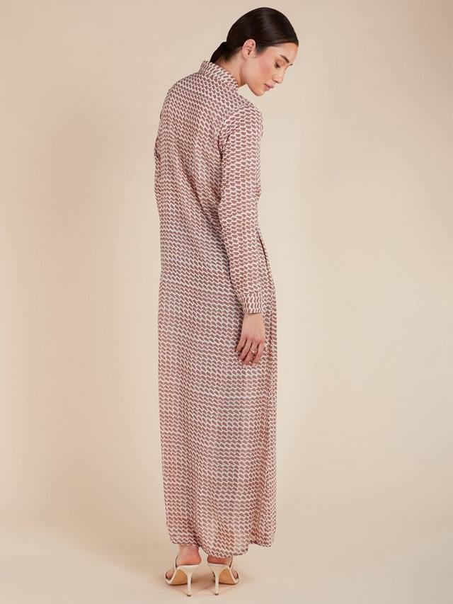 Стильное макси-платье Yamane с геометрическим принтом и приталенным кроем. Платье полностью на подкладке, что обеспечивает максимальную скромность и комфорт. Благодаря роговым пуговицам и незаметным боковым карманам он органично сочетает в себе практичность и моду.