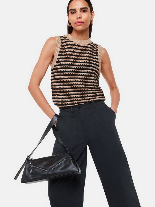 Эти брюки от Whistles, сшитые специально для того, чтобы подчеркнуть вашу фигуру, естественно сидят на бедрах и имеют широкий крой.