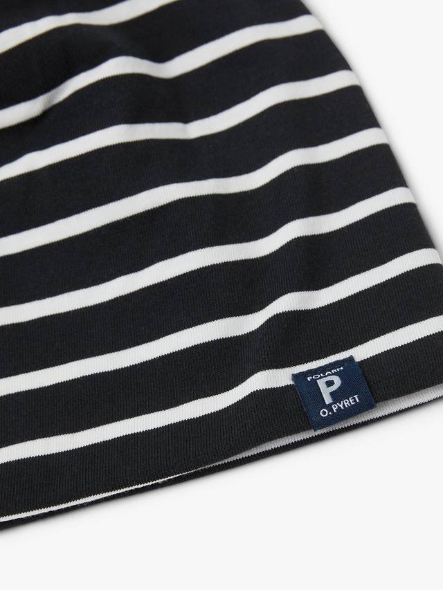Согрейтесь в этом сезоне в этой шапочке-бини из органического хлопка с подкладкой из мягкого переработанного флиса. Эта уютная шапочка в классическую полоску стильно дополнит их наряд.