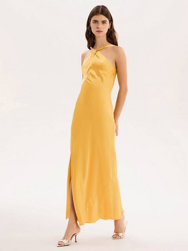 Модель Alessia - это воплощение эффектного силуэта. Низ горловины подчеркнут изюминкой с продетым через нее шелковым поясом. Сшитые из 100% переработанного полиэстерового атласа, они облегают бедра и имеют идеальную длину до середины икры. Наденьте их на следующее мероприятие и позвольте комплиментам хлынуть потоком. Изготовлено с использованием переработанных материалов, что помогает нам уменьшить наше воздействие на планету.