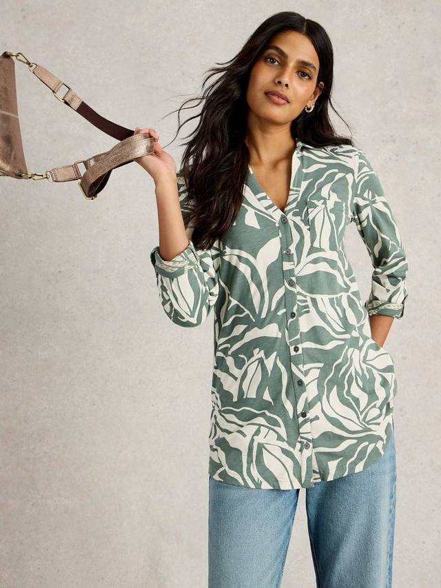 Рубашка с принтом в виде листьев энни White Stuff, цвет Mid Green