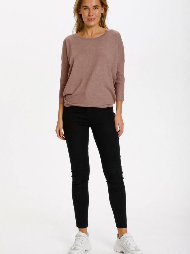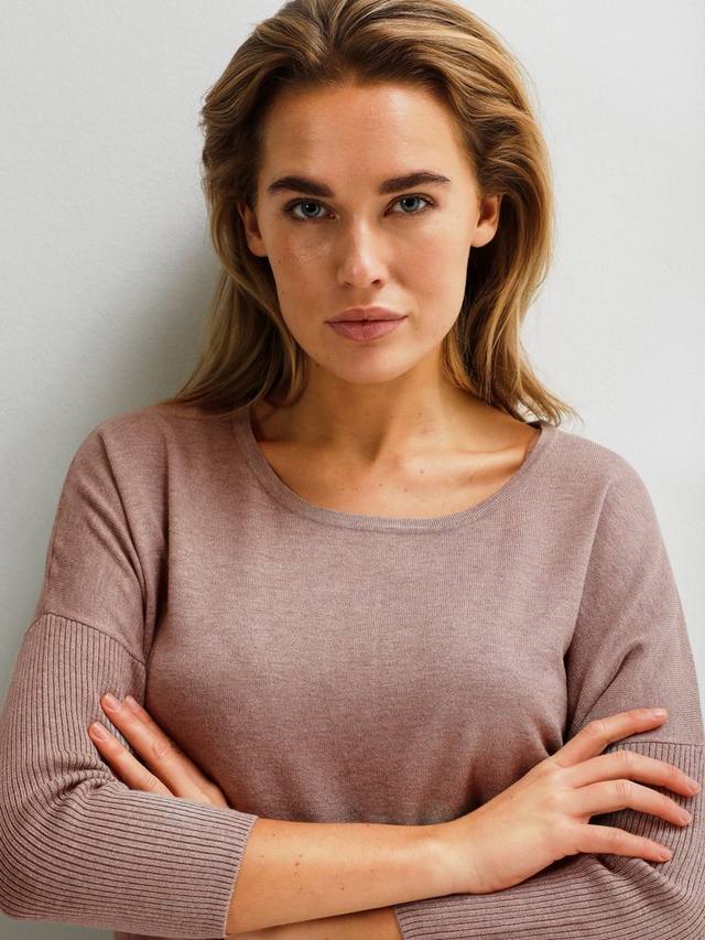 Пуловер Mila - это повседневный и удобный топ на каждый день с круглым вырезом. Он имеет рукава "летучая мышь" длиной 3/4, выполненные из трикотажного ребристого полотна. Пуловер имеет зауженный низ, а низ и рукава "летучая мышь" придают ему свободную посадку.