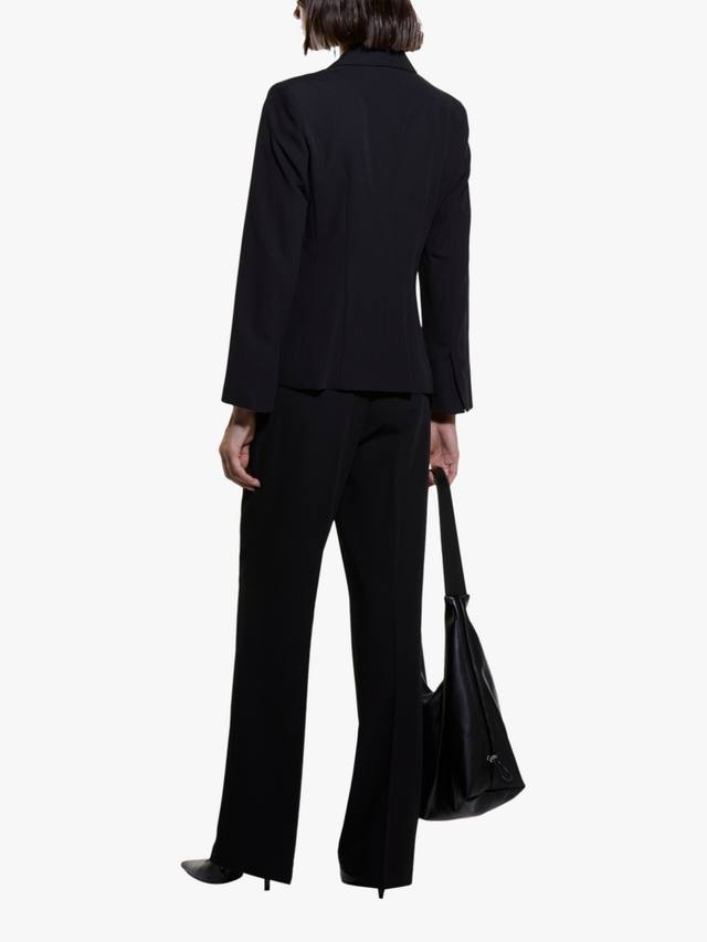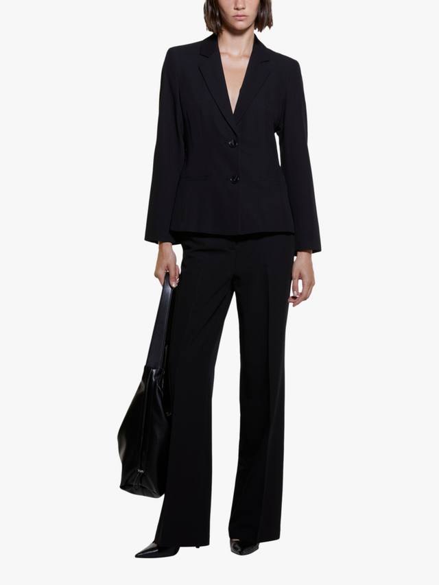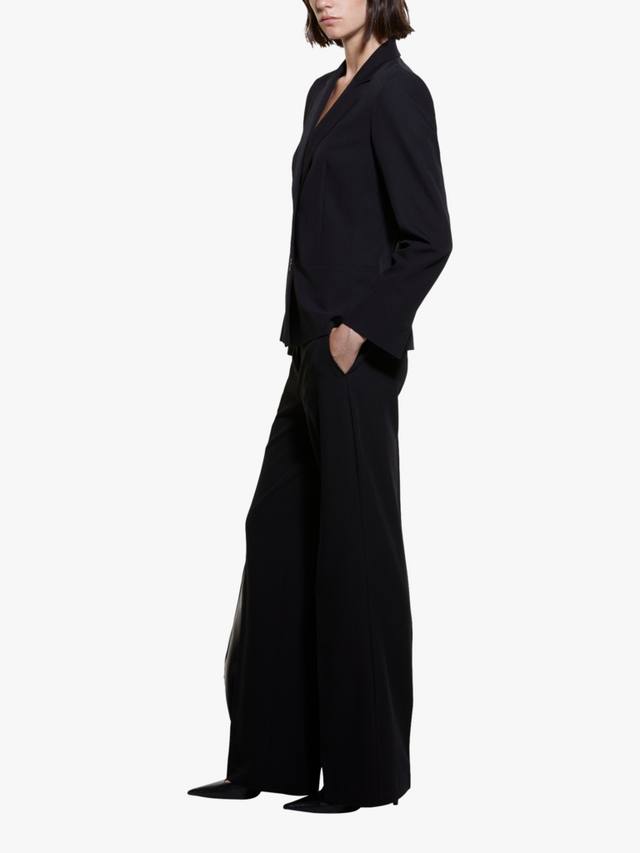Брюки-палаццо с высокой талией из смеси эластичной вискозы. Отглаженная складка вдоль штанин, потайная застежка на крючок, два косых кармана спереди и два прорезных кармана сзади.